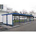 Modularidade e versatilidade na sua forma mais elegante. O sistema de base normalizado por ser ampliado. A construção em aço é resistente à corrosão (galvanizada a quente) e, a pedido, pode ser revestida com cores RAL. Telhado com estruturas de três lados e chapas perfiladas resistentes às intempéries. Fornecido como conjunto com instruções de montagem e plano de fundações.