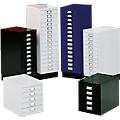 Fabricado em chapa de aço e esmaltado. Cada gaveta dispõe de um puxador prático. Com calhas em plástico para facilitar a divisão das gavetas. Graças ao campo para etiquetas na frente das gavetas, é possível uma identificação clara do conteúdo.