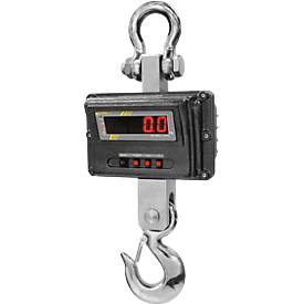Equipada com 3 ganchos rotativos com fecho de segurança, um visor LED autoiluminado (altura dos dígitos de 30 mm) e um indicador de carga LED para a bateria. O tempo de funcionamento é de aproximadamente 60 horas, a carga com transformador requer 12 horas. Com função Data Hold: premindo a tecla HOLD, a indicação do peso é retida até que a tecla seja pressionada novamente. A precisão é representada em intervalos de 0,2% da gama máxima de pesagem.