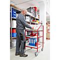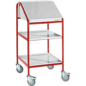Construção em tubo de aço soldado com secretária e tampa rebatível em chapa de aço, 2 prateleiras em chapa de aço.