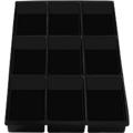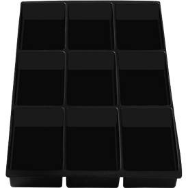 Em poliestireno. As gavetas dos armários podem ser divididas em compartimentos mais pequenos, garantindo uma disposição clara de diferentes peças pequenas na oficina e escritório.