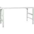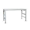A mesa de trabalho Universal Ergo possui um sistema eletro-hidráulico e pode transportar cargas de até 450 kg. A largura e a profundidade, bem como o tampo da mesa de trabalho Universal Ergo podem ser selecionados individualmente. Graças à sua estrutura de aço autoportante, composta por duas estruturas de perfil de aço de 57 x 43 mm e duas robustas estruturas de 60 mm de altura, a mesa de trabalho Universal Ergo é particularmente estável e duradoura. A mesa de trabalho básica está equipada com um sistema electro-hidráulico. Isto permite um ajuste progressivo da altura da mesa de trabalho Universal Ergo com 4 cilindros de elevação. O potente motor eléctrico tem uma baixa tensão de 24 V com protecção térmica contra sobrecarga. A função de memória permite o armazenamento de 4 posições intermédias. A velocidade de elevação é de 100 mm por 10 segundos. A mesa de trabalho Universal Ergo é fornecida com um cabo de ligação de 3 metros, 230 V e uma ficha EU adequada. A mesa de trabalho também já está montada no fornecimento e pode ser usada imediatamente. A mesa de trabalho Universal Ergo suporta um peso de até 450 kg com distribuição de carga uniforme. A mesa de trabalho está disponível com uma largura de 1000 mm, 1250 mm, 1500 mm, 1750 mm, 2000 mm ou 2500 mm. Pode escolher entre uma profundidade de 800 ou 1000 mm. Há também 4 mesas diferentes para escolher. Mais detalhes: - Versão de mesa de melamina: Consiste num revestimento de resina melamínica em E 1 (classe de emissão 1) aglomerado de partículas de 3 camadas com estrutura fina em ambos os lados. Resistente à abrasão e a riscos, bem como sem brilho.A superfície lisa é fácil de limpar.O tampo da mesa é adequado para trabalhos sem exigências mecânicas e químicas mais elevadas, por exemplo, no transporte.- Versão de mesa em plástico: O tampo da mesa em plástico cinzento claro consiste em laminados melamínicos de fácil manutenção em E1 (classe de emissão 1) aglomerado de partículas de 3 camadas prensado com contra-tensão.Bordado com bordas de plástico cinzento claro e resistente a choquesA superfície é fácil de limpar.Resistente à abrasão e a riscos, resistente ao desgaste e sem brilho.O tampo da mesa é adequado para montagem leve, transporte e trabalho de laboratório e para trabalho sem maiores exigências de resistência química.- Versão de mesa multiplex:De acordo com a norma DIN 68705 Parte 2, o tampo multiplex oleado consiste num tampo de faia multicamadas de classe de qualidade I/III.O tampo da mesa multiplex é colado transversalmente à prova de água sob alta pressão de acordo com DIN 68705 IF (IW67) e oleado de forma ecológica.Todas as arestas e cantos são lixados e fixados.O envernizamento claro da placa multiplex é possível mediante pedido. O tampo da mesa multiplex é adequado quando altas tensões mecânicas são necessárias, como em áreas de montagem e produção. Devido à colagem, o tampo da mesa também pode ser utilizado para trabalhos ocasionais com materiais húmidos.