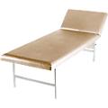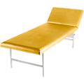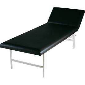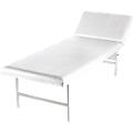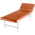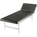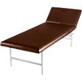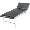 Estrutura em tubo de aço. Parte superior com 22 mm de espessura, com orifícios de arejamento, apoiada sobre 2 apoios angulares, conseguindo uma elevada capacidade de carga, acolchoamento de 40 mm de espessura com um volume de espessura óptimo. Apoio da cabeça regulável em vários níveis para um descanso confortável e relaxado. Forro em pele sintética, respirável, resistente e de fácil manutenção com proteção especial para evitar dobras.