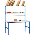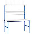 • tampo de trabalho revestido a pó em cinzento-claro, 2000 ou 1600 mm de largura, 800 mm de profundidade, com rebordos em plástico de 2 mm arredondados, reforçado com cantoneiras em aço de 4 mm