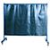 Armação robusta em tubo quadrado com revestimento de epóxi azul. A cortina de 4 mm de espessura é fixada no tubo superior com ganchos metálicos.