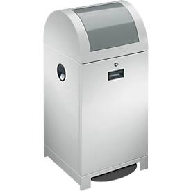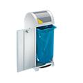 Sistema de contentores para material reciclável, tampa acionada com o pé, suporte de sacos do lixo