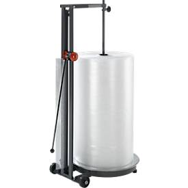 Dispositivo de corte com alavanca de comando e 6 lâminas substituíveis. Para rolos com diâmetro até 800 mm, capacidade de carga de 50 kg.